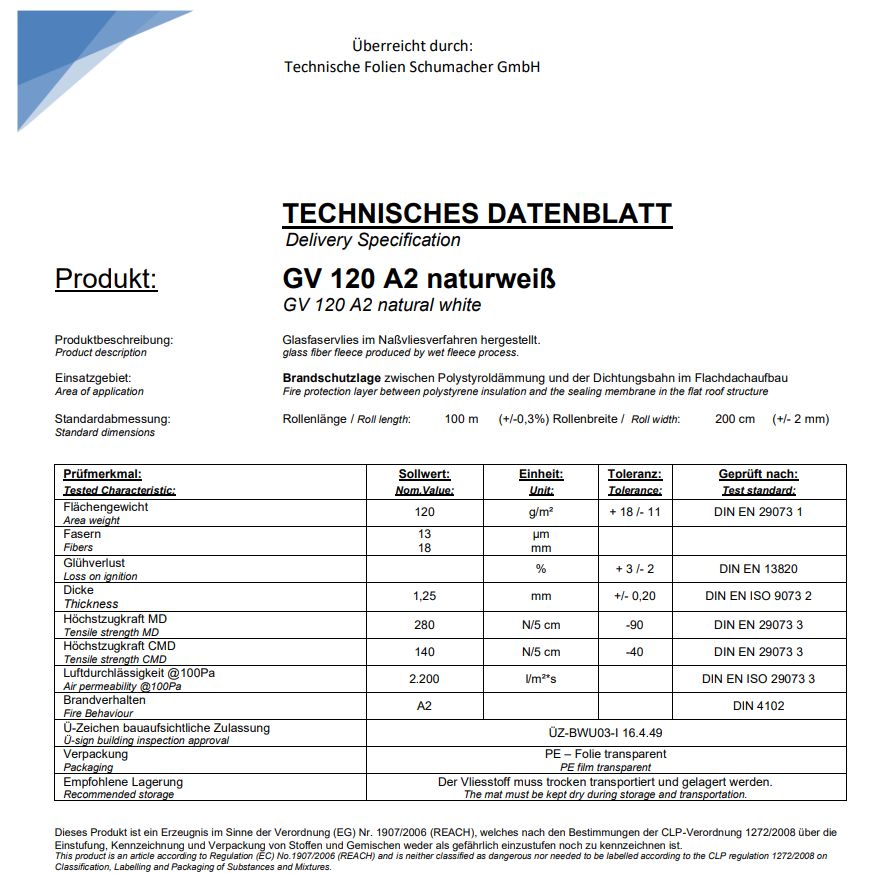- Verarbeitung: Diese Prüf-Nr. P-BWU03-I-16.4.49 gilt für das Glasfaservlies 120 g Baustoffklasse A2.